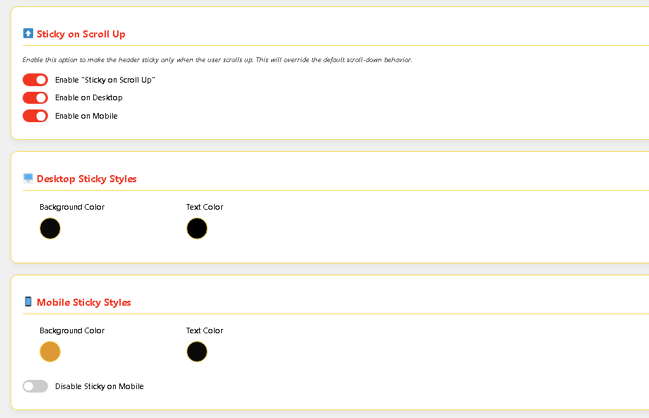 🖌️ Custom Sticky Background & Text Color (Mobile & Desktop) – Independently style your sticky header for both mobile and desktop with live color pickers.